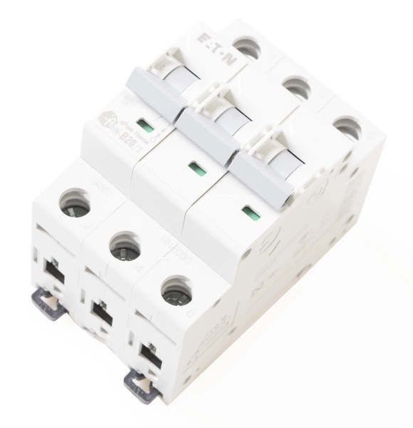 Bezpiecznik CLS6‑B 20/3 Eaton to solidny, trójfazowy wyłącznik nadprądowy o charakterystyce B i znamionowym prądzie 20 A. Zaprojektowany z myślą o ochronie instalacji niskiego napięcia przed przeciążeniami i zwarciami, automatycznie przerywa obwód, chroniąc urządzenia, instalację oraz osoby przed skutkami awarii. Dzięki kompaktowej konstrukcji trójmodułowej doskonale integruje się z systemami automatyki zabezpieczeniowej.