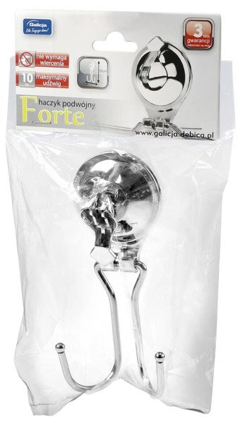 Haczyk podwójny z przyssawką Forte to praktyczne i trwałe rozwiązanie do każdego domu. Wykonany ze stali odpornej na rdzę, sprawdza się doskonale w miejscach narażonych na wilgoć, takich jak łazienka czy kuchnia. Dzięki innowacyjnej przyssawce montaż jest szybki i bezproblemowy – wystarczy przyłożyć haczyk do gładkiej powierzchni, bez konieczności wiercenia czy użycia narzędzi. Solidna konstrukcja zapewnia maksymalny udźwig aż do 10 kg, co pozwala wygodnie zawiesić ręczniki, akcesoria łazienkowe lub kuchenne. Klasyczny design oraz uniwersalny materiał sprawiają, że haczyk Forte świetnie komponuje się zarówno w nowoczesnych, jak i tradycyjnych wnętrzach.