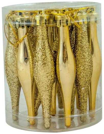 - Zestaw zawiera 18 złotych bombek w kształcie sopelków.