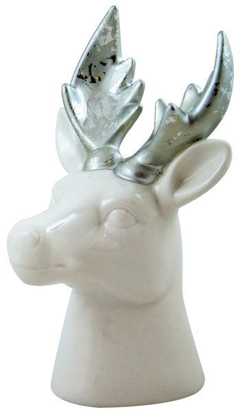 Głowa renifera ze srebrnym porożem to dekoracja, która natychmiast przyciąga wzrok i wprowadza do wnętrza nutę elegancji oraz przytulności. Delikatna ceramika i błyszczące, srebrne poroże tworzą niezwykłe połączenie, które pasuje zarówno do nowoczesnych, jak i klasycznych aranżacji. Ta wyjątkowa ozdoba doskonale sprawdzi się w salonie, sypialni czy na świątecznym stole, podkreślając niepowtarzalny nastrój każdego wnętrza. W okresie Bożego Narodzenia wnosi magiczny, świąteczny klimat, a przez resztę roku staje się stylowym akcentem, który cieszy oczy każdego dnia.