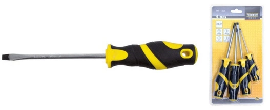 Wkrętaki 4szt Modeco to niezawodny zestaw narzędzi przeznaczony zarówno dla profesjonalistów, jak i majsterkowiczów. Komplet zawiera wkrętaki płaskie oraz Philips, które doskonale sprawdzą się podczas wszelkich prac budowlanych, konstrukcyjnych, instalacyjnych, stolarskich oraz mechanicznych. Dzięki dwukomponentowej, ergonomicznej rękojeści narzędzia zapewniają wygodę i pewny chwyt nawet podczas długotrwałej pracy. Grot wykonany ze stali chromowo-wanadowej gwarantuje wysoką trwałość i odporność na zużycie. Zestaw ten to idealny wybór do precyzyjnego wkręcania i wykręcania śrub w różnorodnych materiałach.