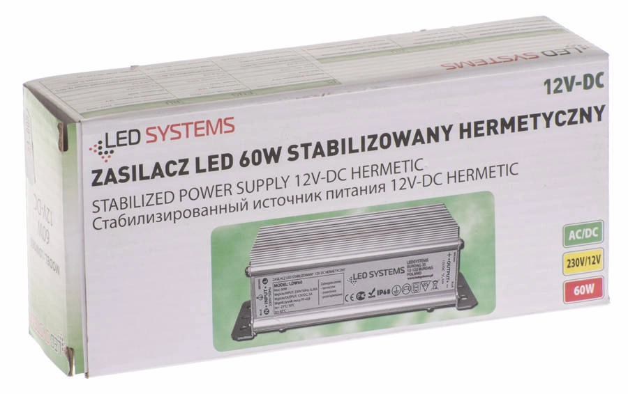 Zasilacz elektroniczny LED 12V-DC 60W to nowoczesne rozwiązanie do zasilania systemów oświetlenia LED w miejscach wymagających wysokiej niezawodności i ochrony przed czynnikami zewnętrznymi. Dzięki hermetycznej obudowie o stopniu szczelności IP68, urządzenie sprawdzi się zarówno wewnątrz, jak i na zewnątrz budynków, chroniąc instalacje przed pyłem i wodą. Stabilne napięcie wyjściowe 12V DC zapewnia długą żywotność diod LED oraz bezpieczeństwo użytkowania. Kompaktowa konstrukcja i wysoka odporność na warunki atmosferyczne czynią ten zasilacz uniwersalnym wyborem do profesjonalnych i domowych instalacji oświetleniowych.