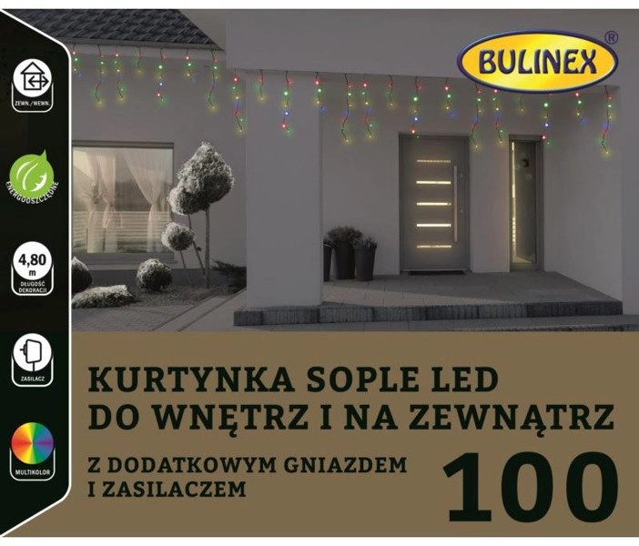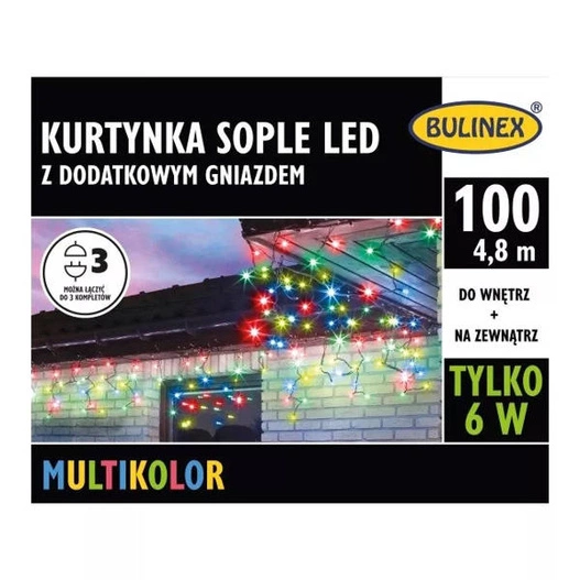 - Kurtyna sople 100LED 4,8m wielokolorowa zewnętrzne