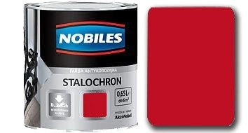 Stalochron Niebieski Sygnałowy jest nowoczesna farbą o silnych właściwościach antykorozyjnych, opracowana przez markę Nobiles. Przeznaczona została do malowania metalu i elementów żeliwnych, z myślą o wysokich walorach ochronno-dekoracyjnych. Można ją stosować zarówno wewnątrz jak i na zewnątrz. Po naniesieniu Nobiles tworzy wysokiej jakości elastyczną powłokę, odporną na działanie niekorzystnych czynników atmosferycznych(deszcz, śnieg, mróz, grad, zmienne temperatury. Powstała warstwa charakteryzuje się atrakcyjnym połyskującym wykończeniem o jasno czerwonej barwie. Ponadto powstała powłoka pozostaje również odporna na uszkodzenia np. zarysowania, obtarcia. Nobiles Stalochron jest gwarancją profesjonalnego długoletniego zabezpieczenia malowanej powierzchni.