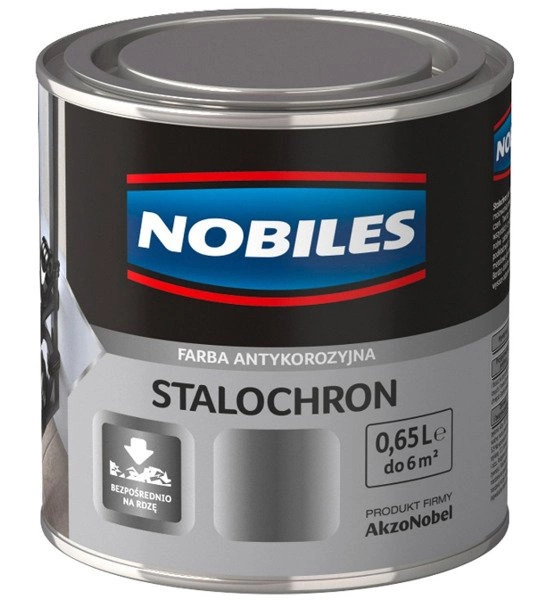 Stalochron Niebieski Sygnałowy jest nowoczesna farbą o silnych właściwościach antykorozyjnych, opracowana przez markę Nobiles. Przeznaczona została do malowania metalu i elementów żeliwnych, z myślą o wysokich walorach ochronno-dekoracyjnych. Można ją stosować zarówno wewnątrz jak i na zewnątrz. Po naniesieniu Nobiles tworzy wysokiej jakości elastyczną powłokę, odporną na działanie niekorzystnych czynników atmosferycznych(deszcz, śnieg, mróz, grad, zmienne temperatury. Powstała warstwa charakteryzuje się atrakcyjnym połyskującym wykończeniem o czysto niebieskiej barwie. Ponadto powstała warstwa pozostaje również odporna na uszkodzenia np. zarysowania, obtarcia. Nobiles Stalochron jest gwarancją profesjonalnego długoletniego zabezpieczenia malowanej powierzchni.