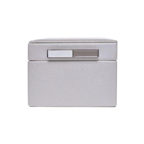 - Kasetka na biżuterię skórzana beżowa 13x13x10 cm