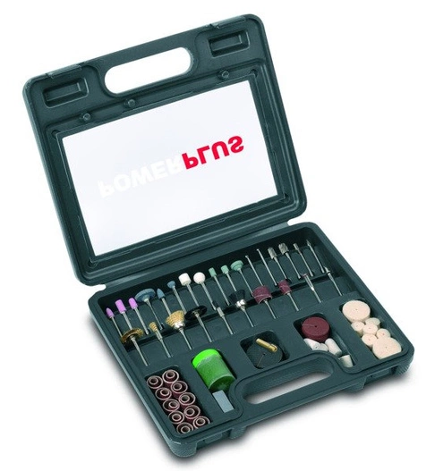 - Zawartość: paski szlifierskie, uchwyty, ściernice, trzpienie, tuleja zaciskowa, pasta polerska, kamień do usuwania zadziorów, tarcze tnące, filcowe koła polerskie, wiertła HSS, szczotki nylonowe i miedziane