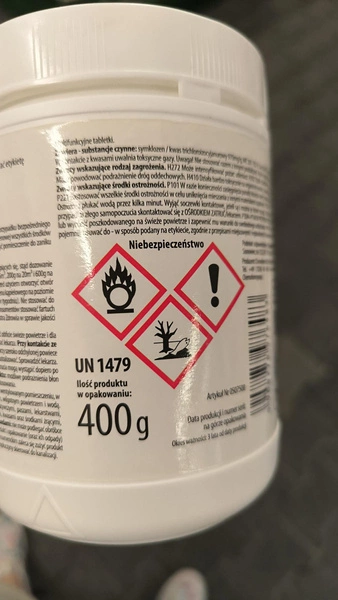 - Bezpieczeństwo: produkt biobójczy – stosować zgodnie z instrukcją, unikać kontaktu bezpośredniego z tworzywem basenu, używać w pływaku lub skimmerze