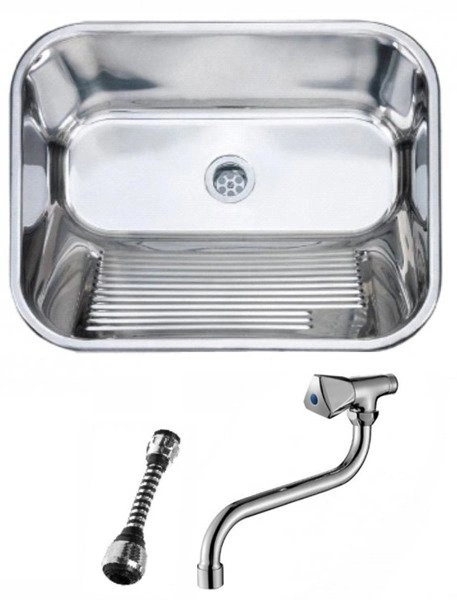 - Zlew gospodarczy stalowy z syfonem i baterią