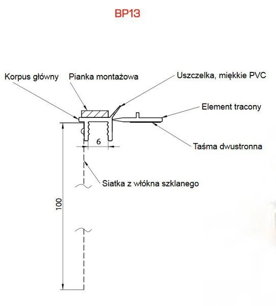 - Uszczelka ochronna – zabezpiecza piankę przed zabrudzeniem i uszkodzeniem podczas prac wykończeniowych.