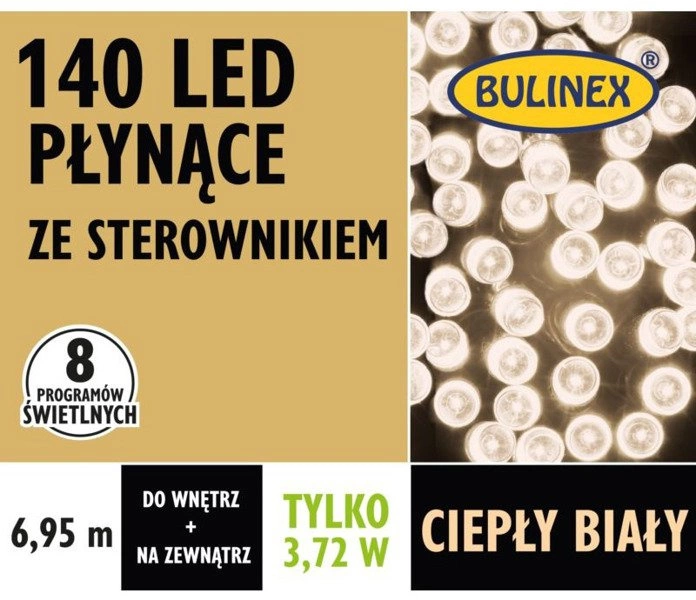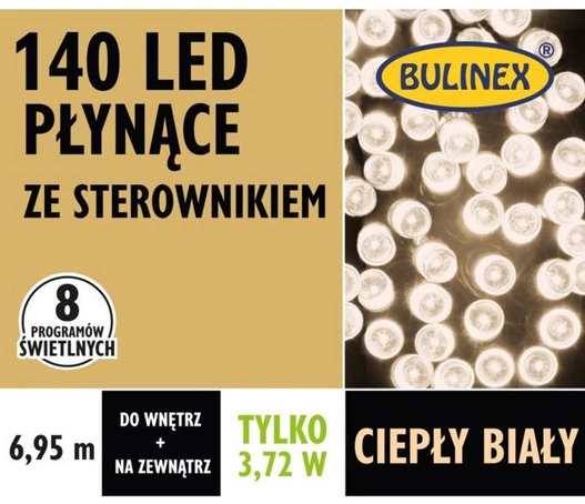 - Lampki LED 140L 6,95m biały ciepły zewnętrzne