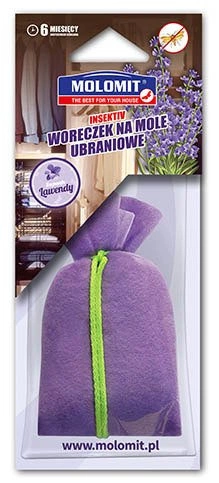 Woreczek na mole lawenda Molomit idealnie nadaje się do szaf, garderób, szuflad, komód oraz innych miejsc, gdzie przechowywane są ubrania i tekstylia. Może być używany także w biurze, spiżarni lub samochodzie, wszędzie tam, gdzie zależy nam na świeżości i ochronie przed owadami.