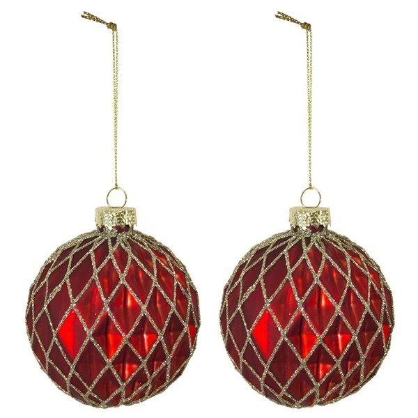 Bombki szklane czerwono-złote romby 2 sztuki 9cm