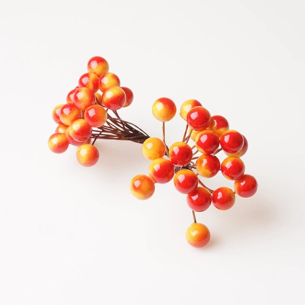 Jarzębina na druciku pomarańczowa to pełna uroku dekoracja, która natychmiast wnosi do wnętrza przytulność i wyjątkowy klimat. Subtelnie połyskujące, drobne kulki w intensywnie pomarańczowym kolorze tworzą efektowny bukiecik, który doskonale komponuje się zarówno z jesiennymi, jak i zimowymi aranżacjami. Ta dekoracja sprawdzi się w roli samodzielnej ozdoby na stole, w wazonie czy w świątecznym stroiku, ale również jako uzupełnienie większych kompozycji florystycznych. Jarzębina na druciku to nie tylko ozdoba – to mały akcent, który potrafi całkowicie odmienić nastrój w domu.