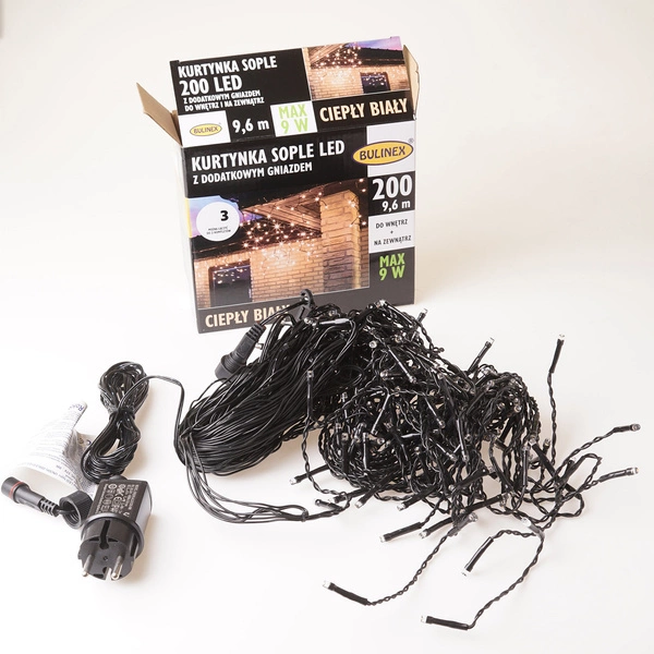 - Kurtyna 200LED 9,6m biały ciepły gniazdo zewnątrz