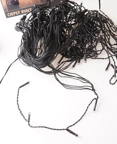 - Stylowy wygląd – czarny przewód pięknie kontrastuje z ciepłymi światełkami, podkreślając elegancję dekoracji.