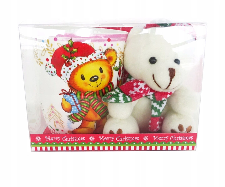 Wyjątkowy kubek z misiem 390ml wraz z uroczą maskotką – białym misiem w świątecznym szaliku – to duet, który rozgrzeje serce każdego miłośnika przytulnych, rodzinnych chwil. Kubek ozdobiony delikatną grafiką przedstawiającą misia z cukrową laską i prezentem zachwyca subtelnymi detalami, a miękka maskotka wprowadza do wnętrza nutę dziecięcej radości. Zestaw emanuje ciepłem, idealnie wpisując się w świąteczne aranżacje kuchni lub salonu. To nie tylko praktyczny dodatek, ale także piękna dekoracja, która wywołuje uśmiech i buduje wyjątkowy nastrój przy każdej filiżance herbaty czy kakao.