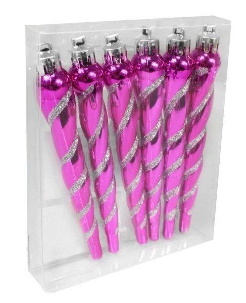 Bombki sople różowe z brokatem 10cm 6 sztuk
