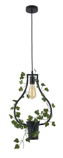Bardzo atrakcyjna wizualnie lampa, wpisująca się w modny, industrialny charakter wnętrz, będący jednocześnie wypełniony zielenią, w postaci sztucznych roślin. Starannie przygotowana, nada blasku salonowi, jadalni czy pokojowi dziennemu. Doskonale prezentuje się w centralnym miejscu pomieszczenia, na przykład nad stołem - jako oświetlenie główne, lub jako element doświetlający.