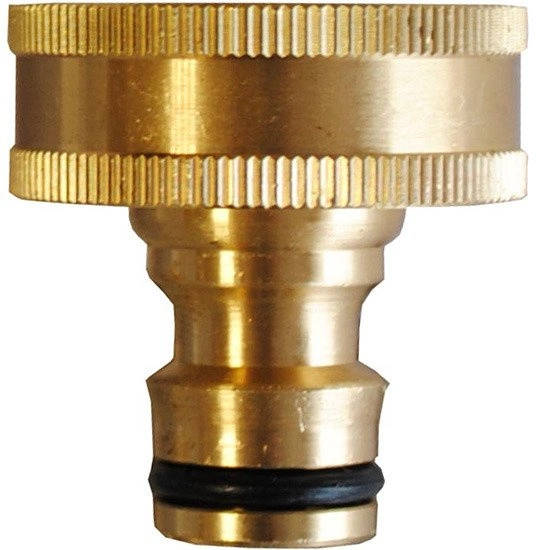 Przyłącze kranowe z gwintem wewnętrznym, wykonane z mosiądzu. Zakończone zostało wejściem na szybkozłączkę i przeznaczone jest do instalacji na ujęciu wody z gwintem zewnętrznym.