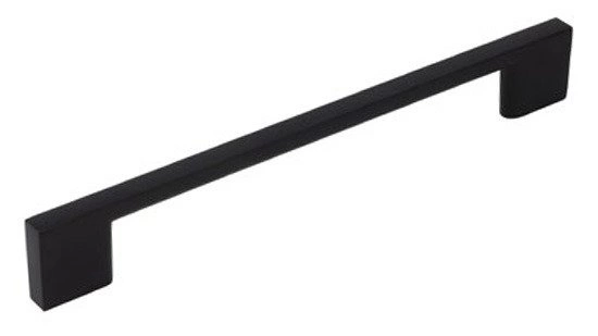 Uchwyt meblowy, czarny. Bardzo klasyczny, oparty na liniach prostych. Doskonale uzupełnia front mebli, stając się wspaniałym uzupełnieniem całości.