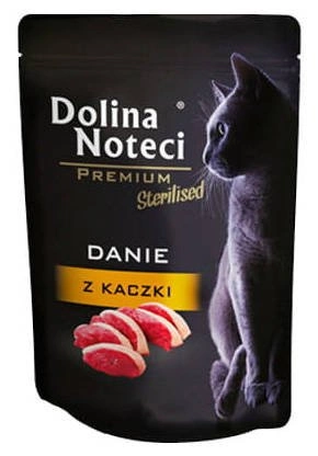 Danie z kaczki dla kota wysterylizowanego 85g Dolina Noteci to starannie opracowana, pełnoporcjowa mokra karma dla kotów wszystkich ras, które przeszły zabieg sterylizacji. Produkt bazuje na wysokiej zawartości mięsa z kaczki, wołowiny i kurczaka, dzięki czemu dostarcza niezbędnych białek oraz składników odżywczych. Specjalnie dobrane dodatki, takie jak chlorek amonu i L-metionina, wspierają zdrowie układu moczowego, minimalizując ryzyko powstawania kamieni. Karma nie zawiera zbóż, glutenu, mleka ani sztucznych dodatków, co czyni ją bezpiecznym i naturalnym wyborem na co dzień. Poręczna saszetka gwarantuje świeżość i wygodę podania.