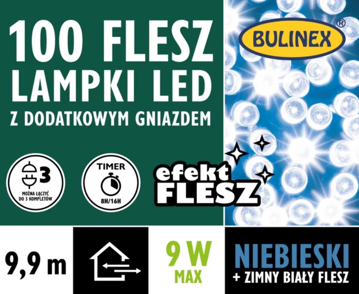 - Lampki zewnętrzne i wewnętrzne 100LED niebieskie Flesz
