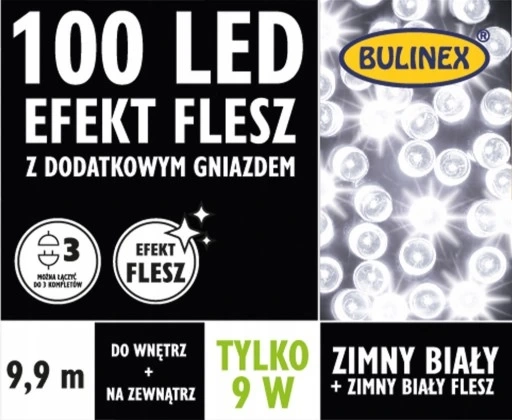 - Lampki zew/wew 100 LED 9,9m Flesz zimny / biały zimny