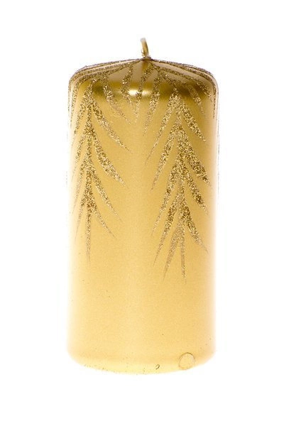 - Świeca Złota metalik z brokatową gałązką 12cm