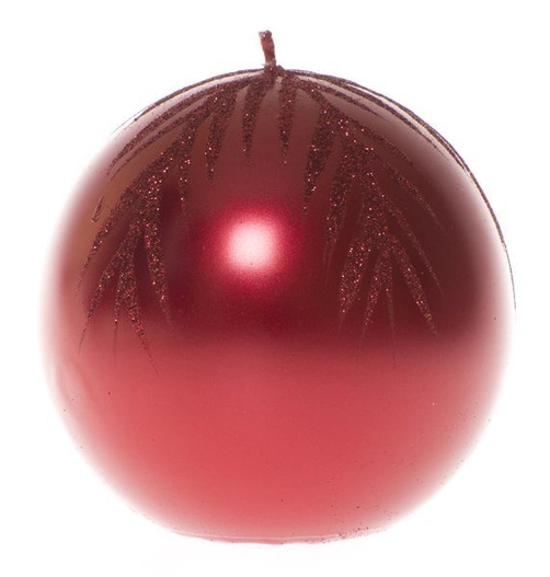 - Świeca kula Czerwona metalik z brokatową gałązką 10cm