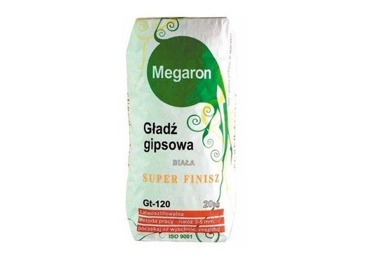 Gładź gipsowa BIAŁA Gt-120 jest suchą mieszanką gipsową do zastosowań wewnętrznych. Przeznaczona jest do wygładzania nierówności i chropowatości tynków mineralnych pod powłoki malarskie i tapety