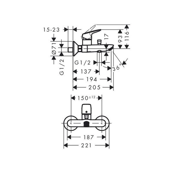 - Typ: jednouchwytowa bateria wannowa ścienna (natynkowa)