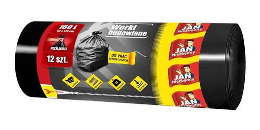 Worki na odpady budowlane, które pomogą przywrócić czystość po remoncie i w jego trakcie. Ich pojemność to 160 litrów, a konstrukcję przygotowano ze wzmocnionej folii. Na rolce znajduje się 12 sztuk worka.