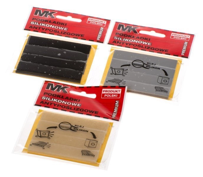 Podkładki silikonowe antypoślizgowe 17x75mm 4 sztuki to praktyczne akcesorium do ochrony podłóg i stabilizacji urządzeń oraz mebli. Dzięki specjalnej warstwie klejącej, montaż jest szybki i bezproblemowy – wystarczy przykleić podkładki w wybranym miejscu. Elastyczny silikon skutecznie tłumi drgania oraz zapobiega przesuwaniu się pralki, lodówki, łóżka, szafki czy innych przedmiotów. Podkładki są dostępne w trzech kolorach do wyboru, co pozwala na dopasowanie do każdego wnętrza. To niezawodne rozwiązanie, które zwiększa bezpieczeństwo użytkowania sprzętów domowych i przedłuża żywotność powierzchni.