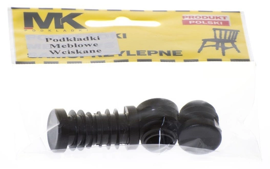 Podkładki meblowe wciskane 18mm 4 sztuki to praktyczne akcesorium, które pozwala w prosty sposób zabezpieczyć podłogę przed zarysowaniami oraz uszkodzeniami spowodowanymi przesuwaniem mebli. Wykonane z wysokiej jakości tworzywa, podkładki są łatwe w montażu – wystarczy je wcisnąć w otwór w nodze krzesła, stołu lub innego mebla. Ich uniwersalny czarny kolor sprawia, że doskonale komponują się z różnymi rodzajami wyposażenia wnętrz. Produkt zapewnia komfort użytkowania mebli oraz dbałość o estetykę i trwałość podłóg.