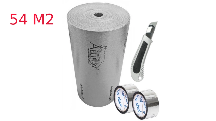 - Folia termoizolacyjna Alufox 5mmx1.2mx45mb=54m2 + 2x taśma + nóż metalowy gratis