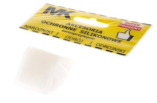 Narożnik ochronny, silikonowy i samoprzylepny. Przygotowany został w białym kolorze i wyposażony w warstwę z klejem. Dzięki temu jest niesamowicie łatwy w montażu i pozwala zabezpieczyć powierzchnię mebli, ściany czy drzwi.