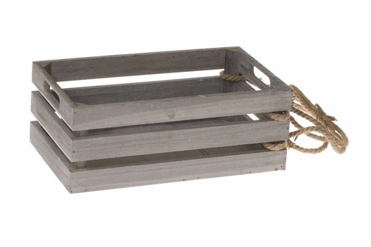 Skrzynka drewniana szara na sznurze 32x20x13cm