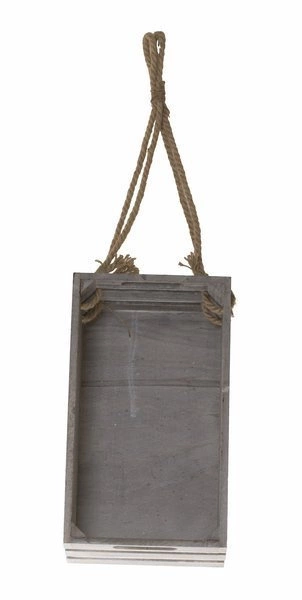 Szara skrzynka, którą przygotowano z drewna i pomalowano na kolor. Osadzona jest na sznurze, dzięki czemu można ją zawiesić w dowolnym miejscu. Skrzynka może służyć jako atrakcyjne dopełnienie doniczki z rośliną, ale również jako element pod inne dekoracje. Posiada bardzo ładny, rustykalny wygląd.
