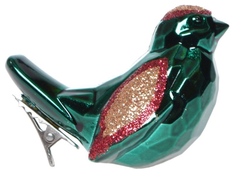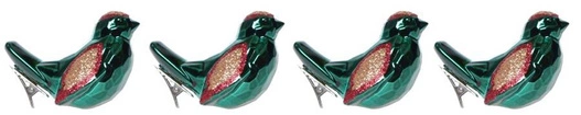 - Bombki ptaszki zielono-czerwone na klipsie 4 sztuki