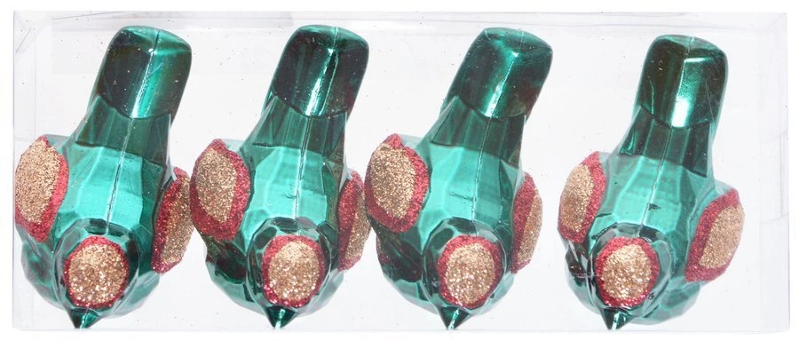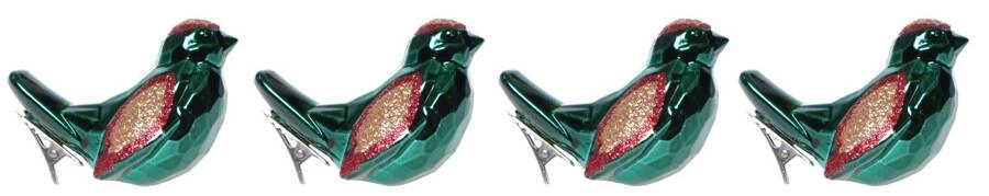 Bombki ptaszki zielono-czerwone 4 sztuki