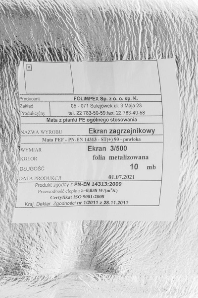 - Materiał: Spieniony polietylen laminowany folią metalizowaną