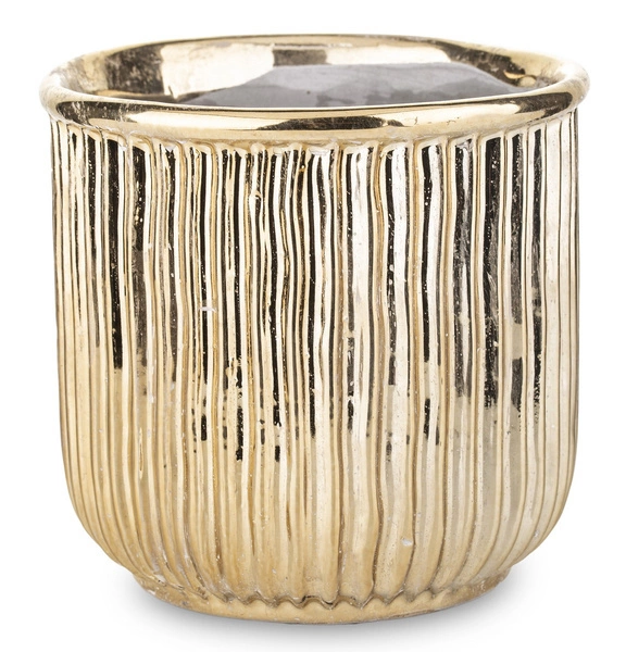 Złota osłonka kamionkowa o plisowanej powierzchni to wyjątkowa dekoracja, która rozświetli każde wnętrze. Jej subtelny połysk i delikatne żłobienia tworzą wrażenie przytulności i elegancji, sprawiając, że nawet najprostsza roślina staje się małym dziełem sztuki. Ta osłonka doskonale odnajdzie się zarówno w nowoczesnych, jak i klasycznych aranżacjach, a w okresie świątecznym doda blasku i świątecznego nastroju każdemu kącikowi.