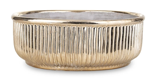Osłonka kamionka w kolorze złotym, z plisowaną powierzchnią, jest atrakcyjnym sposobem na podkreślenie uroku rośliny. Wzornictwo i kolorystyka sprawiają, że ma ona charakter uniwersalny, ale jednocześnie doskonale komponuje się z okresem zimy i świętami Bożego Narodzenia.