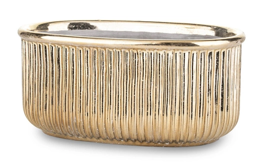 Osłonka kamionka w kolorze złotym, z plisowaną powierzchnią, jest atrakcyjnym sposobem na podkreślenie uroku rośliny. Wzornictwo i kolorystyka sprawiają, że ma ona charakter uniwersalny, ale jednocześnie doskonale komponuje się z okresem zimy i świętami Bożego Narodzenia.