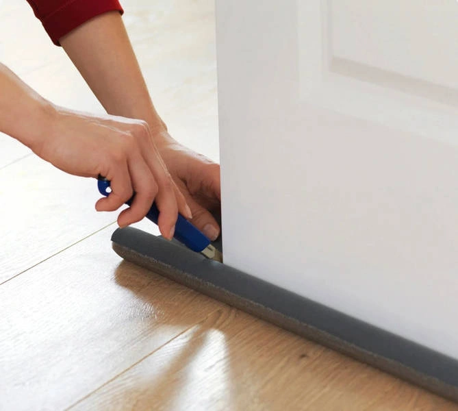- Łatwy montaż – wystarczy przyciąć i wsunąć pod drzwi.