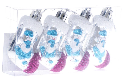 Bombki skarpetki srebrno-różowe 4 sztuki 6cm