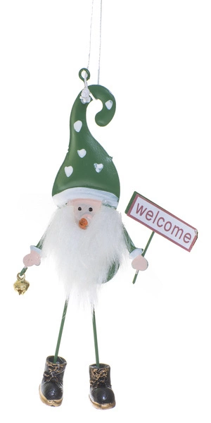 Zawieszka przygotowana w formie Mikołaja w ruchomymi nogami. Ozdoba wykonana została z metalu, który pomalowano w wyraziste kolory. Jest bardzo atrakcyjną alternatywą dla klasycznych dekoracji choinkowych, wprowadzając do wnętrza magię i nastrój Bożego Narodzenia.