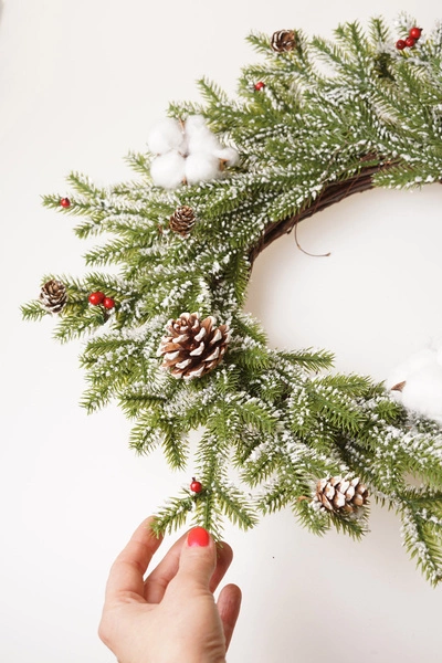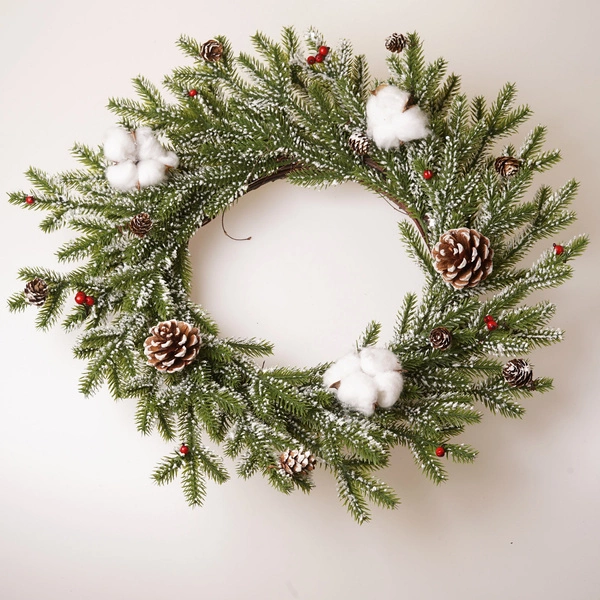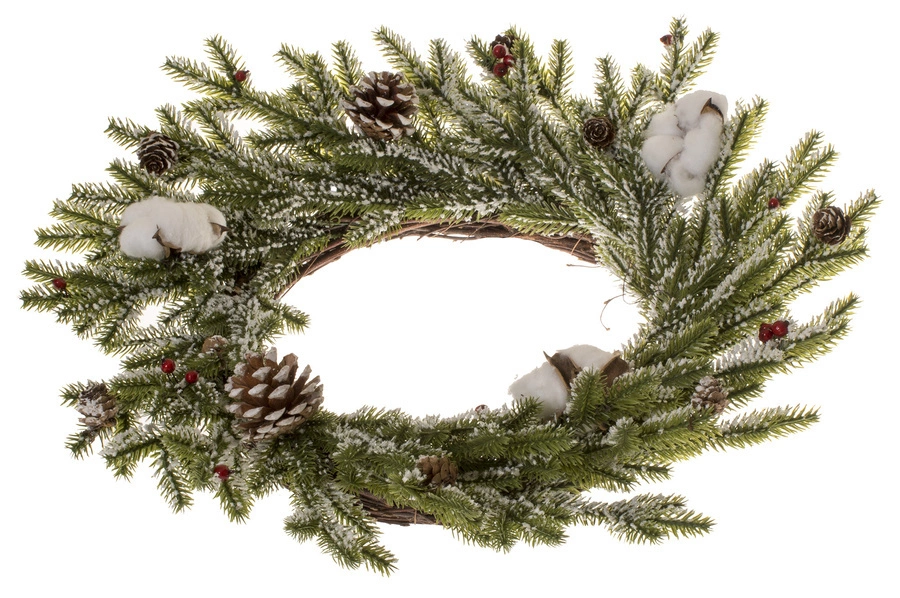 - Wianek świerkowy z szyszkami i bawełną 55cm