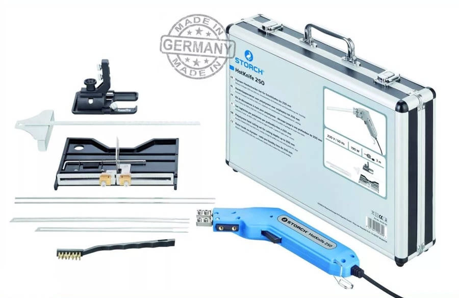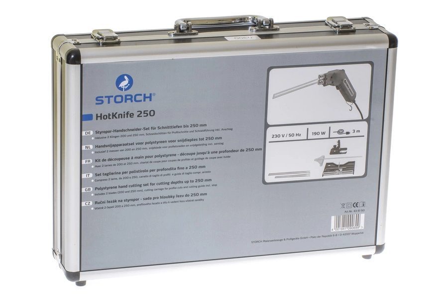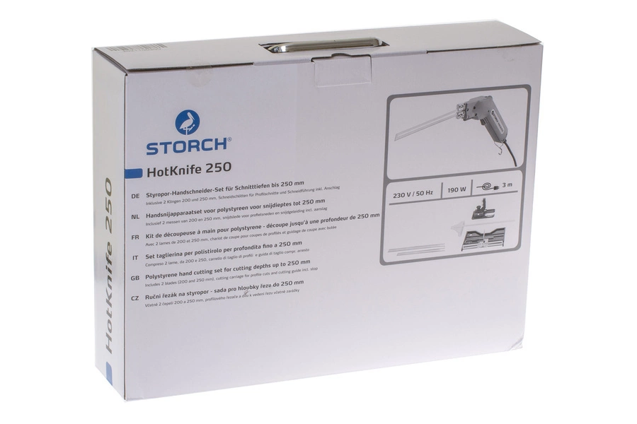 Nóż do cięcia styropianu Storch Hot Knife 250, jest w pełni profesjonalnym narzędziem, przeznaczonym do pracy ze sztywnymi płytami styropianowymi. Jego budowa pozwala na precyzyjne cięcie płyt styropianowych i styroduru o grubości do 25cm.